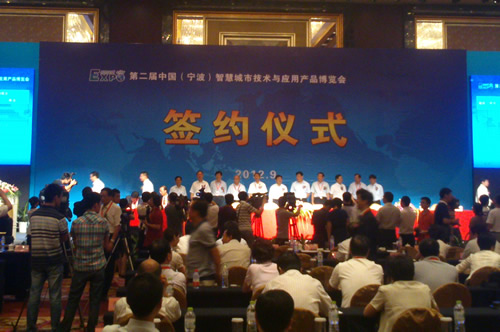 2012年9月7日上午,第二届中国(宁波)智慧城市技术与应用产品博览会签约仪式在宁波香格里拉大酒店举行,共有物联网、云计算、智慧交通、智慧教育等智慧城市建设相关领域的23个项目签约。我区工业机械手生产项目、新型光电传感器及配件生产项目在会上签约。
